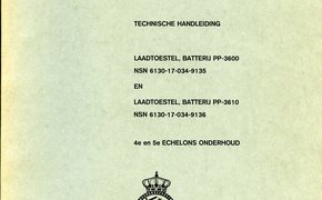 Batterij-laadtoestel PP-3181. 1/5 TH 11-613. Laadtoestel, Batterij, PP-3181. 1/5 TH 11-613. Batterij-Laadinstallatie PP-3981. Technische beschrijving en onderhoud. 3/5 TH 11-619 Batterij-Laadtoestel PP-4424. Reparatie Handleiding. 1/2 TH 11-626. Batterij-Laadtoestel PP-3600. Batterij-Laadtoestel PP-3610. Bediening en 1e en 2e echelons onderhoud. 1/2 TH 11-627. Batterij-Laadtoestel PP-3600. Batterij-Laadtoestel PP-3610. 3e echelons technische beschrijving en onderhoud. 3 TH 11-627 Batterij-Laadtoestel PP-3600. Batterij-Laadtoestel PP-3610. 4e en 5e echelons onderhoud. 4/5 TH 11-627 Batterij-Laadtoestel PP-4471. Bediening. 1/2 TH 11-629 Batterij-Laadtoestel PP-4884 (XO-1)/T. 1/2 TH 11-630 Laadtoestel Batterij PP-5040. Bediening 1e en 2e echelons onderhoud. 1/2 TH 11-636 Laadtoestel Batterij PP-5040. Veld- en Basisonderhoud. 3/5 TH 11-636 Batterij-Laadtoestel PP-4763. Bediening 1e en 2e echelons onderhoud. 1/2 TH 11-644