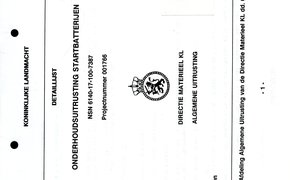 Voedingstoestel PP-3028. 1 DL 6130-17-704-3311 Voedingstoestel PP-3028. 3/5 DL 6130-17-704-3311 Accumulator in kist BB-3011 (A). 1/5 DL 6140-17-023-3826, Herdruk Onderhoudsuitrusting, MK-6090 t.b.v. 3e echelonsonderhoud aan de PP-3600/3610. DL 6140-17-054-5827. Onderhoudsuitrusting Startbatterijen DL 6140-17-100-7387. Mondings-Stop-Achterverlichting, cpl. Houwitser, Middelzwaar, Getrokken, 155 mm. M 114. 1 DL 6220-17-015-4683 Mondings-Stop-Achterverlichting, cpl. Houwitser, Middelzwaar, Getrokken, 155 mm. M 114. 2/5 DL 6220-17-015-4683 Zaklaantaarn, MX-5478. DL 6230-17-101-882 Donkere Kamer uitrusting PH-3020. DL 6780-17-706-4938 Simulator, Radar-Signaal SM-4892. 2/5 DL 6940-99-633-1952 Aanhanger, Tank, Water, 1 ton, 2 W. 250 gallon (950 liter), Ben Hur. Aanhanger, Vracht, 1 ton, 2 W. Ben Hur. 1 DL 7610-17-033-7311 Aanhanger, Tank, water, 1 ton, 2 W. 250 gallon (950 liter), Ben Hur. Aanhanger, Vracht, 1 ton, 2 W. Ben Hur. 3/5 DL 7610-17-033-7311