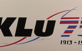 Rouwlint KLu; oranje-blauw Vlag KLu met diverse toestellen tot eind W.O.II Vlag KLu met diverse toestellen tot eind W.O.II Houten wapenschild van de Koninklijke Kaderschool Luchtmacht (KKSL) in oranje verpakking Borduurwerk embleem KLu achter glas Sticker KLu 75 jaar Gedenkplaat opening hoofdkwartier KLU 30 maart 1983 Muismat KLu Klu roundel op linnen Plaquette KLu embleem Asbak KLu Borden KLu (diep)