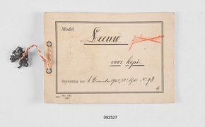 Duplicaatmodel van een grote bronzen knoop met leeuw, volgens beschikking van 29 april 1936 Duplicaatmodel voor een bronzen indelingsembleem in de vorm van de Nederlandse leeuw voor een kepi volgens beschikking 1928, 1929 of 1933 Standmodel van een bronzen nationaliteitsembleem in de vorm van een leeuw tbv een kepi volgens beschikking 6 december 1923 Standmodel voor een bronzen of gebronsd nationaliteitsembleem in de vorm van de Nederlandse leeuw tbv een kepi volgens beschikking van 6 december 1923