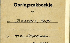 Groene gevechtsjak (battledress) van Poolse korporaal met riem aan voorzijde met kartels Groene geveschtsbroek van Poolse korporaal Khaki overhemd met lange mouwen en rangonderscheidingstekens voor een korporaal (Britse makelij) Gedenkboek door de Koninklijke Nederlandsche Vereeniging "Ons Leger" opgedragen aan den commandant, de officieren, onderofficieren, korporaals en manschappen der Koninklijke Nederlandsche brigade "Prinses Irene" dossier 1940-1945 Hitler, de korporaal-veldheer Oorlogszakboekje van Frits Brandes, Dpl. Korporaal. No 3306